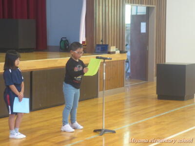 終業式では、1・3・5年の代表児童が前期に頑張ったことや後期に向けての意気込みについて作文を発表しました。前期の歩みをしっかりとふり返り、次のステップに向けてめあてを決める。とてもすばらしいことだと思います。