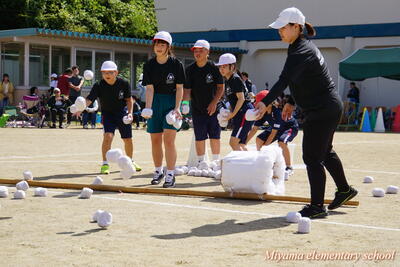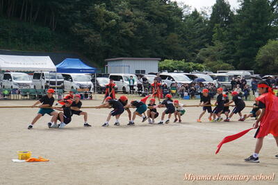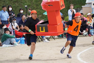 団体種目は、ブロックごとに実施しました。チェッコリ紅白玉入れ、綱引き、美山ダービーと、紅白がそれぞれに力を合わせて、全力で戦いました。