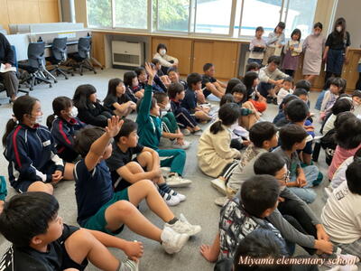 1年生は国語で「くじらぐも」を読んでいます。とても楽しい物語で、読んでいてわくわくする名作です。もしかしたら、ご家族の方も小学生の時に読んだかもしれまんね。くじらぐもに「おーい」と声をかけたら返事をしてくれた場面、校庭の1年生はどんな気持ちだったのかをみんなで楽しく想像していました。