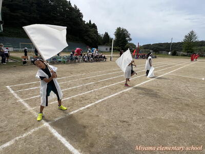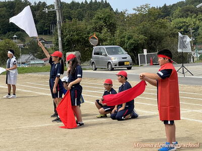 運動会を陰で支える5・6年生にとっても、今日の予行は貴重な練習の場でした。本番でスムーズにできるように、各係の役割や動きを確認しました。自分の係に責任をもつ、自分の役割を果たす、しかし運動会を盛り上げるためにプラスワンの努力をする。そんな姿が見られました。一生懸命に演技をする子どもたち、それを精一杯支える子どもたち。両者がいての運動会なのだと感じます。