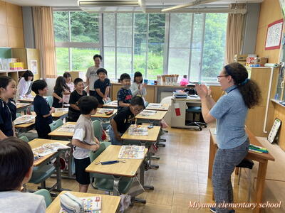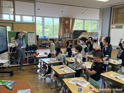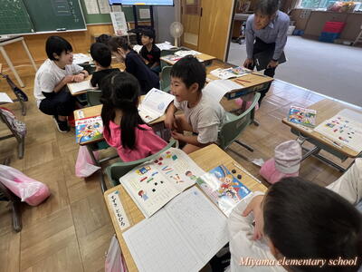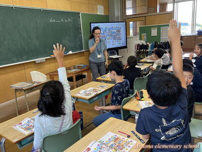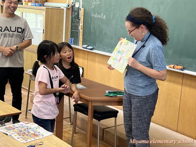 外国語活動や外国語で、英語を教えてくださったヒラリー先生。今日が今年度最後のレッスンの日でした。いつも楽しく、そしてやさしく英語を教えてくださった先生でした。3年生の教室では、ヒラリー先生へ感謝のお手紙をみんなで書いて渡しました。「とってもたのしかったよ」とヒラリー先生。子どもたちは「See you again.」とお別れしました。