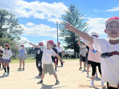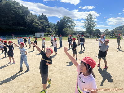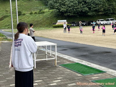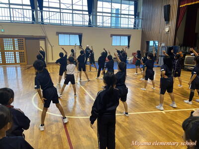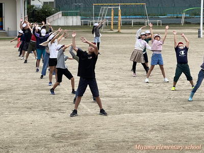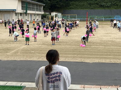 運動会まであと2日。雨が上がったので校庭で、最後の仕上げ練習をしました。朝マラソンではなく、朝ダンスからスタート。早朝でしたが、ダンス講師のAyaKa先生も見てくださり、最後の激励をしてくださいました。