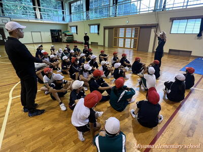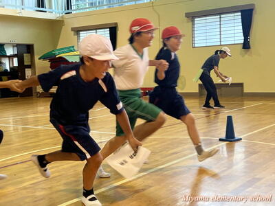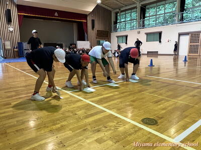 5・6年生は、チャンスレースの手順の確認です。運動会ではおなじみ「借り物(人)競争」です。当日は、どんな物(人)を探すようになるか秘密ですが、ご来賓や保護者の皆様のご協力が必要かもしれません。その際は、どうぞよろしくお願いします。