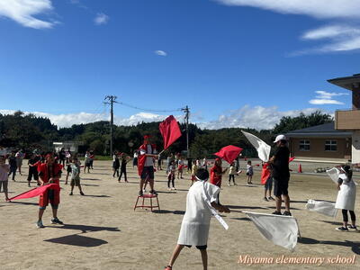 昼練習は応援合戦でした。紅組も白組も精一杯の声を出して応援します。「今日は100%の力が出せました。本番は120%でいきましょう」と体育の先生からも激励がありました。