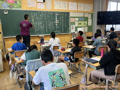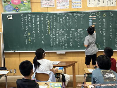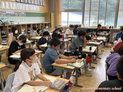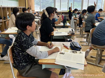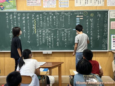 6年生は国語で「やまなし」という物語を読んだあと、作者宮澤賢治の人生について考えました。課題はズバリ「宮澤賢治の人生は幸せだったのか?」です。とても難しい課題ですが、伝記を読んで感じた宮澤賢治の考え方や生き方から、自分なりの価値観をとおして、宮澤賢治の人生を価値づけます。友達の考えを聞くと、自分の考えが変わる子もいます。もちろん変えない子もいますが、どちらも友達の考えを聞くことで自分の考えを深めていくようです。