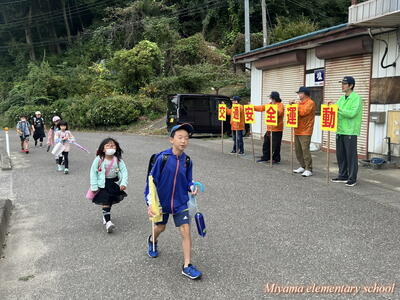 本日から今月30日まで、秋の全国交通安全運動週間です。それぞれの地区で交通安全協会の皆様、交通安全母の会の皆様、地域の皆様が子どもたちの徒歩通学やスクールバスの乗車状況を見守っていただきました。ありがとうございます。運動は30日まで続きます。子どもたちの安全意識を高めるためにも、お気づきの点は遠慮なく声をかけていただければと思います。