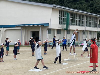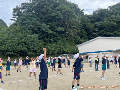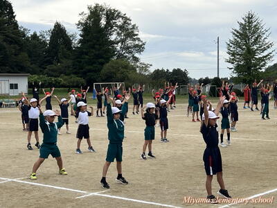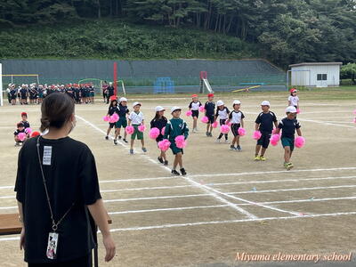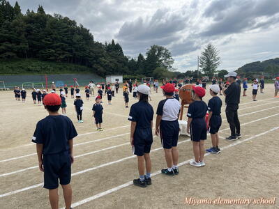 2023年9月26日 19時30分2校時目から運動会の予行を実施しました。入場行進、開会式から閉会式まで、一連の流れを確認しながら、一部の種目については係の動きなどを確認しました。本番を想定しているので、これまでの練習とは異なる、真剣なまなざしが印象的でした。2年生のあいさつでも「予行練習ですが、元気に頑張りましょう」という呼びかけがありました。