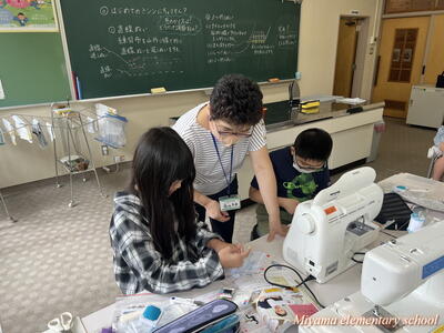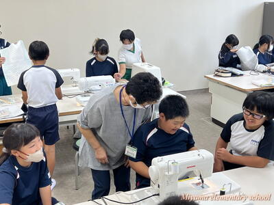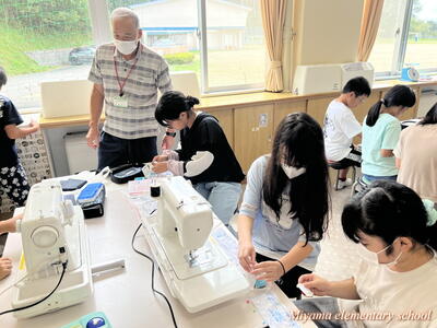 6年生は、家庭科の学習でミシンを使ってトートバッグを製作しています。学校のミシンは、糸の調整などに癖があって、少し使いにくいものが多く、子どもたちは悪戦苦闘することがあります。そこで、学校ボランティアの方にミシンの癖の部分を使いやすく調整していただきました。もちろん、作り方全般においてもサポートしていただきました。困ったときにすぐに支援してくださるので、本来学ぶべきミシンの使い方を身に付け、ものをつくる楽しさを味わうこともできます。ありがとうございます。明日も5年生のミシンでお世話になります。