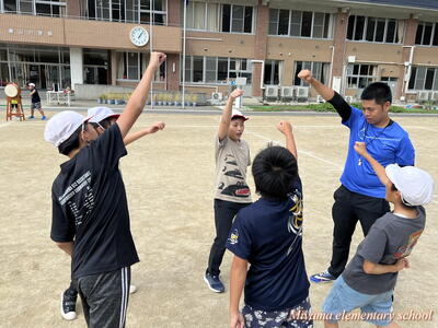 今日は初めての全校生によるダンス練習でした。全校生126名で校庭を埋め尽くし、一斉に踊り出すと迫力があります。もちろん、その迫力は一人一人の懸命なダンスがあってこそ。一人の熱量×126であることが迫力につながります。曲の途中で隊形の変化や移動を初めて練習しましたが、曲とダンスを身体で覚えている子どもたちは、あっという間に身に付けてしまいます。