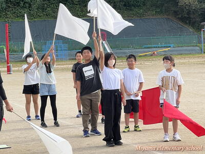 もう一つの全体練習は、応援練習でした。紅白それぞれに気持ちをぶつけ合う、迫力の応援ができるとよいと思います。まだまだ応援の声は出そうです。「当日は120%の力で応援しよう」が合い言葉です。