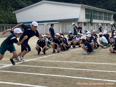 運動会で披露するダンスも、全校生で取り組む大切な表現運動です。もちろん、音楽に合わせて身体を動かすことを楽しむという目的がありますが、全校生で行うと集団演技の美しさも表現できます。今日はダンス講師のAyaKa先生に来ていただき、1から3年生と4から6年生に分かれて、それぞれに練習をしました。60名のダンスは迫力があります。1~3年生は、今日からポンポンをもって踊りました。
