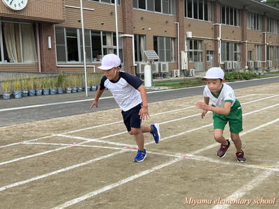 運動会において、紅白どちらの組になるかは、子どもたちにとって結構重要なことです。紅白の力がなるべく均等になるよう、一人一人の走力を測りました。熱中症の心配があったため、今日のような曇空はチャンスです。どの学年も一斉に計測です。紅白は明日までに決まる予定です。今年はどっち組?
