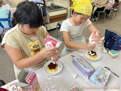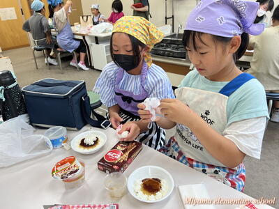 4回目のクラブ活動。自分たちで立てた活動計画に従って、楽しくおいしく活動しました。スポーツクラブはラケット競技に挑戦、家庭クラブはデコレートを工夫したデザートづくり。科学クラブは氷と塩を使ってシャーベットづくり、タブレットクラブはプログラミングに挑戦、イラストクラブはお気に入りのキャラクターを描いていました。自分たちで決めたことだから、進んで活動しているのがいいですね。