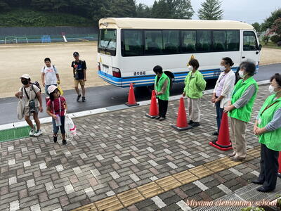 2023年9月5日 12時25分今朝は船引町更生保護女性会の皆様が、朝のあいさつ運動に来てくださいました。徒歩で通学する子、バスで通学する子、それぞれに「おはようございます」と声をかけてくださいました。子どもたちも、知っている地域の方らしく笑顔であいさつをしたり、手を振ったりして応えていました。地域の方に見守られている安心感がある、というのはありがたいことです。(一人一人にティッシュもいただきました)