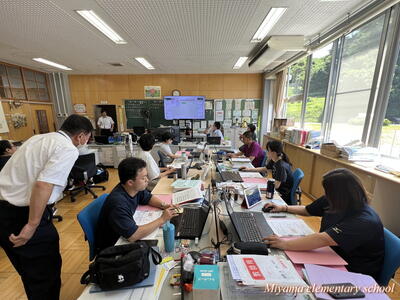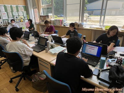 連日猛暑が続いていますが、いかがお過ごしですか。子どもたちは、家庭や地域の中で夏休みを満喫しているでしょうか。夏休みであっても、規則正しい生活をして健康第一で過ごせるといいですね。また暑さのため、突然の大雨や雷雨も予想されていますので、万が一の場合の行動について、各ご家庭で話し合っておきましょう。 夏休み中、先生方も研修会でお勉強!