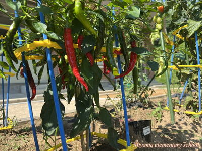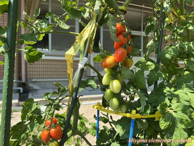 畑の野菜も少しずつ実っています。トマトもおいしそうです。野菜を育てている学年のみなさんは、学校にいらした際は、収穫のご協力をお願いします。
