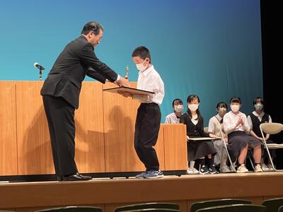 美山小代表の6年生の主張も、すばらしいものでした。統合して仲間が増えたという経験と、その一方で地域の行事がなくなるという経験から、自分の住んでいる地域や田村市を、人と人がつながっていける場所にしたいと熱く訴えました。そして、今の自分にできること、将来の自分にできることをわかりやすく伝えました。立派でした。感動しました。見事「優秀賞」を受賞しました。おめでとうございます。