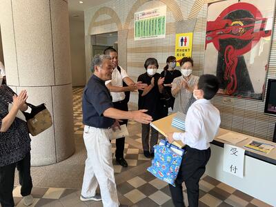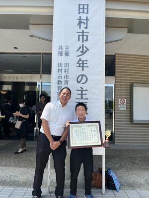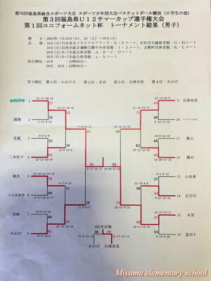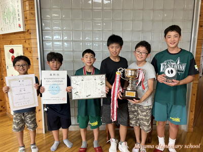 夏休み中もたくさんのスポーツ大会があり、見ているだけでも勇気をもらいます。田村市の各スポーツ少年団の活躍もうれしい限りです。小学生のバスケットボール大会、第3回福島県U12サマーカップ選手権大会において、ふねひきバスケットボールクラブ(男子)が優勝し、キャプテンと本校の選手が、関係者の皆様と一緒に優勝報告に来校しました。県で1位になるのは大変なことですが、6年生を中心にチームワークで勝ち上がったそうです。おめでとうございます。