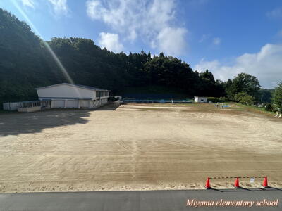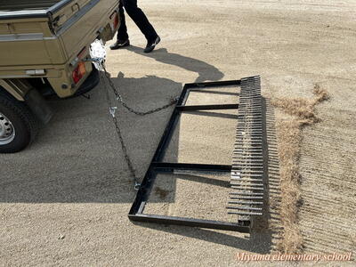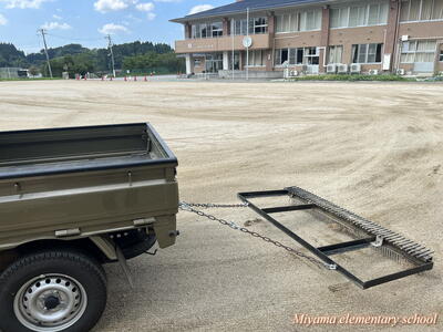 お盆期間中に、PTA会長様が中心となり校庭の整地をしていただきました。今年は夏の高温と時々降る大雨の影響で、草の生育がとてもよく、校庭が緑のじゅうたんにおおわれました。整地の前に、地域コーディネーターの伊藤様に校庭の草をとるための特製レーキを3種類も製作いただきました。おかげさまで、きれいな校庭となりました。運動会に向けて、いいスタートが切れそうです。ありがとうございました。