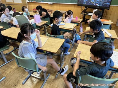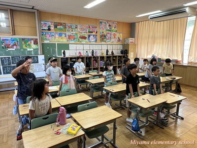夏休みが終わり、今日から学校生活が再開です。どの子も楽しい夏休みの思い出や頑張った成果をたくさん抱えて、元気に登校しました。夏休み中、ご家庭や地域で子どもたちを見守り、導いてくださったことに心より感謝いたします。朝の全校集会は、暑さ対策からオンラインで実施しました。校長から「笑顔あふれる学校をつくるために、今までにプラスワンで頑張りましょう」と話をしました。また、夏休み中に各種コンクールやスポーツで頑張った友達を表彰しました。