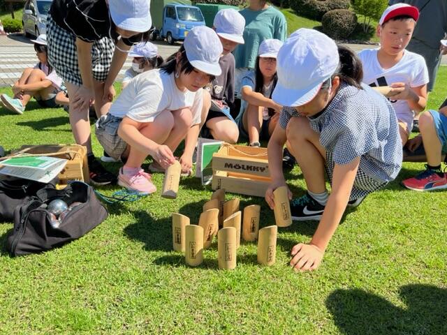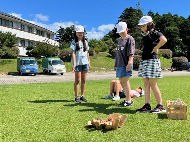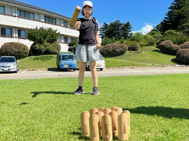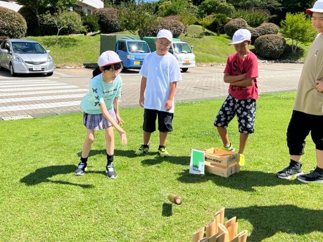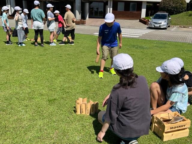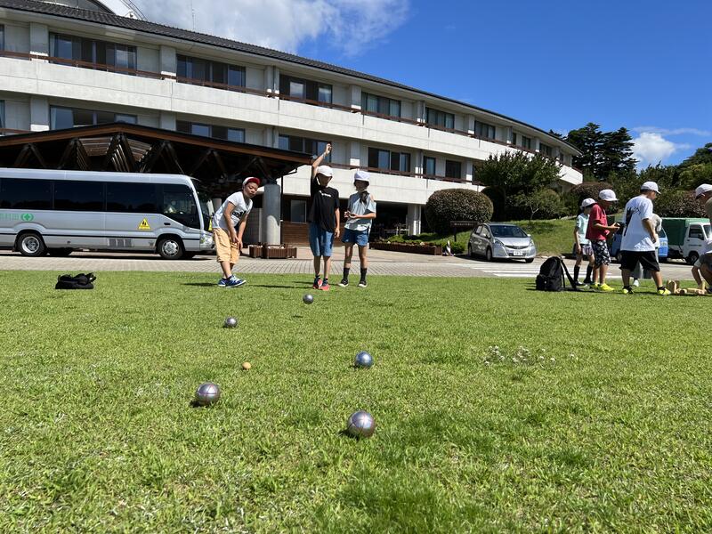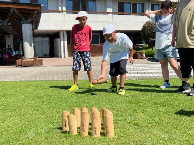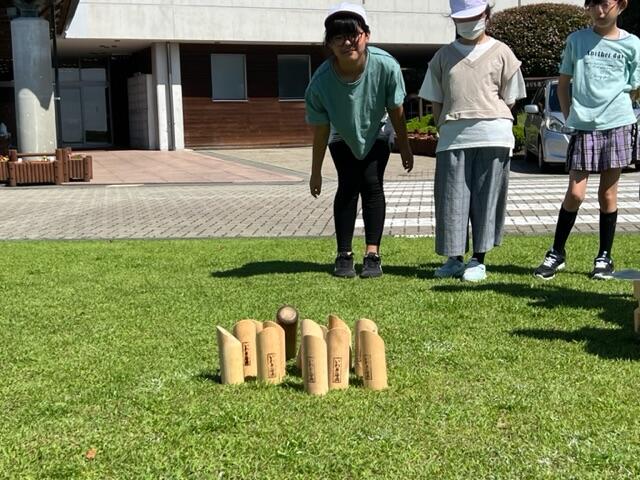 2日目の最初の活動はニュースポーツ。ペタンクやモルックという競技を体験しました。的当てのようなスポーツ。なかなか難しい。