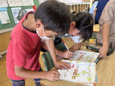 夏休みまで登校日はあと3日となりました。学習のまとめをしたり、夏休みの計画を立てたり、少しずつ学用品を持ち帰ったりと、それぞれの学年で夏休みを迎える準備をしています。前期後期の2期制ですので、夏休みギリギリまで通常の学習もしています。心の中ではわくわくしていも、落ち着いて学習するみやまっ子、さすがです。