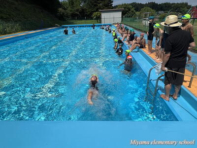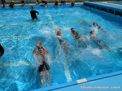 水泳は、自分で立てた目標に向かって挑戦しやすい学習です。ただ水の中は呼吸ができないので、息継ぎや無理のない手のかき、身体の姿勢など、いくつか乗り越えるハードルがあります。5・6年生は、一つ一つのハードルを乗り換えられるように段階を踏んで練習をしていました。水泳記録会まであと2週間、頑張ります。