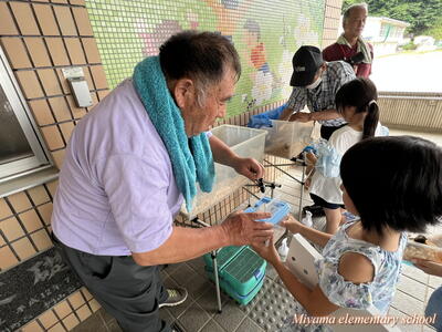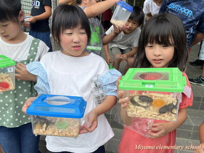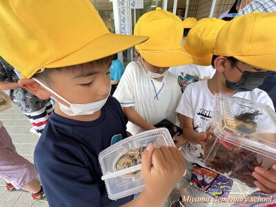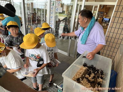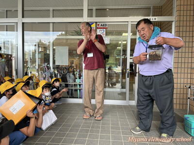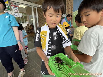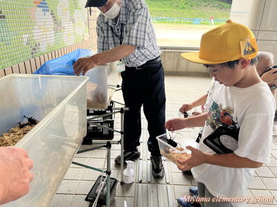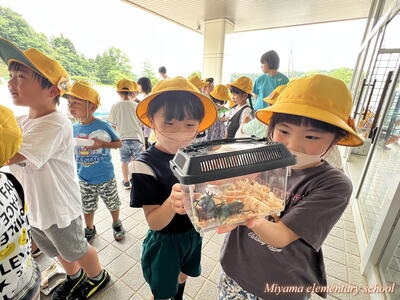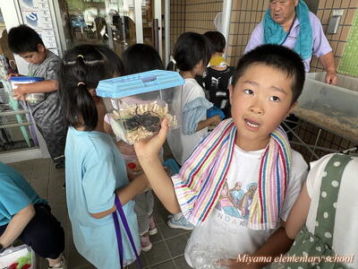 1・2年生は、地域(上移地区)の方からカブトムシをいただきました。昨年までは緑幼稚園・緑小学校でカブトムシのプレゼントをしてくださっていたそうですが、統合しても子どもたちにぜひとのことで、オスとメスのつがいでいただきました。子どもたちも、見事な大きさのカブトムシにびっくり。大事そうに抱えて帰りました。おうちで大切に育ててくださいね。まだまだカブトムシはたくさんいます。3年生以上のみなさんで飼いたいという場合は、ぜひ虫かご等を学校にもってきてください。