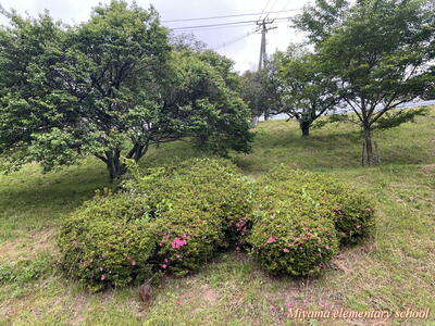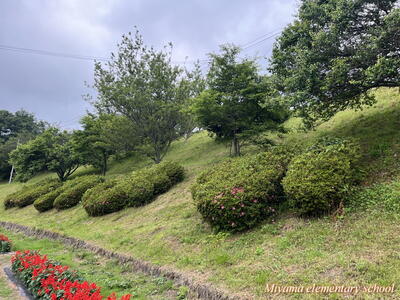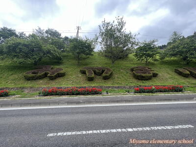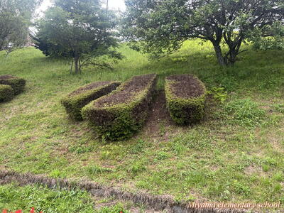 学校下の道路に面した法面に、「み」「や」「ま」「小」の文字をかたどったツツジの植え込みがあります。この1年は手入れをしていませんでした。見るに見かねた地域の方が、きれいに刈り込んでくださいました。ありがとうございました。ぼんやりしていた文字が、見違えるようにくっきりと見えるようになりました。学校においでの際は、ぜひ法面の植え込みをご覧ください。