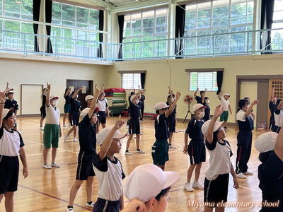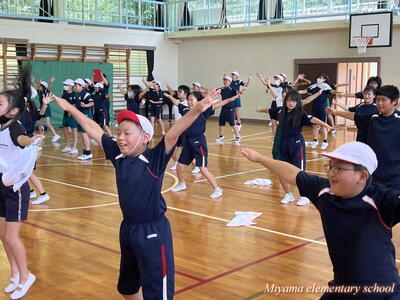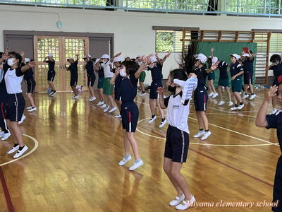 運動会での披露をめざしているダンスですが、講師のAyaKa先生から教えていただくのが一区切りとなりました。4~6年生は、夏休み前最後の練習とあって、できるだけ先生から吸収しようと真剣でした。先生からも「少しのアドバイスで、断然かっこよくなる。さすがは上学年!」とほめていただきました。次回は夏休み明け。隊形を整えて、仕上げていきます。夏休み中に、ダンスを忘れないように!