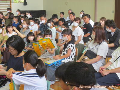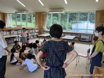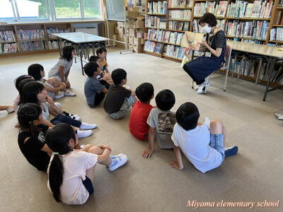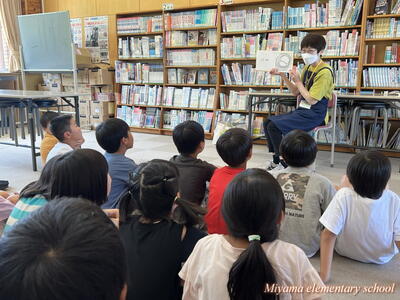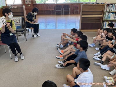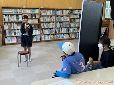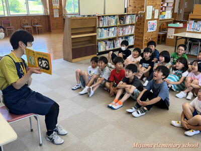 今日も、おはなしの会どんぐりの皆さんが、読み聞かせに来てくださいました。今日は2年生です。「なつのおとずれ」や「サラダでげんき」「おいしそうなしろくま」など、2年生が興味をもちそうな本、夏にぴったりの本を読んでいただきました。2年生も、お気に入りの1冊が見つかったようです。明日は4年生のおはなし会です。