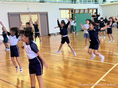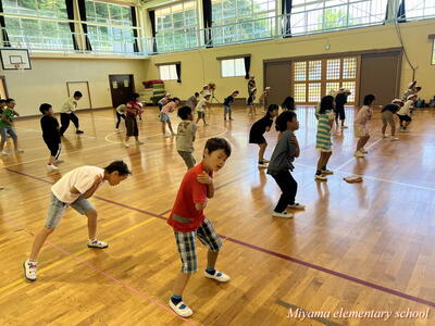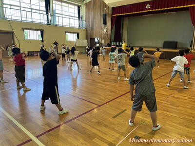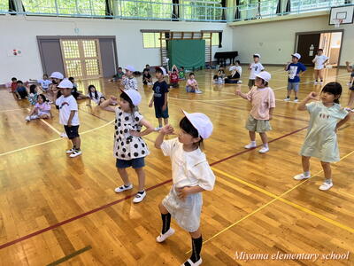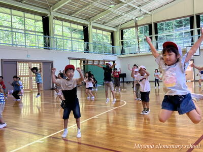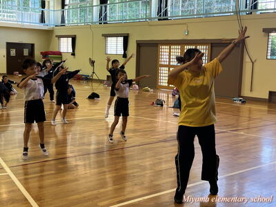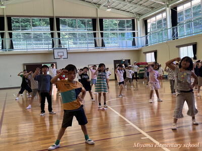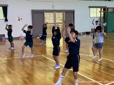 1~3年生も、2曲目のダンスに挑戦しています。下学年ですので、踊っている様子がかわいい。しかし、動きがピタッと決まるとかっこよくて力強い。そんなダンスです。笑顔で、一生懸命踊っているのがステキです。