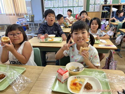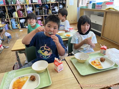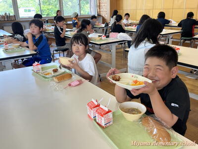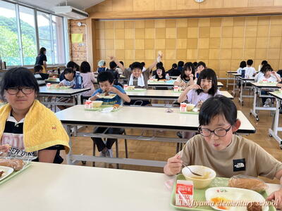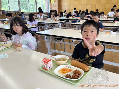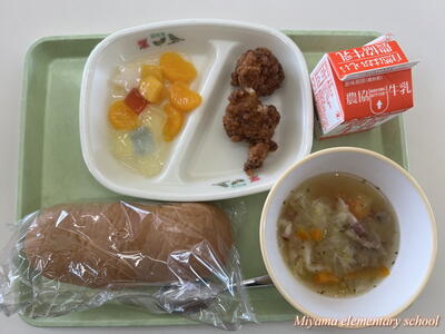 今日の給食はたなばた献立でした。鶏肉の唐揚げ、黒糖パン、たなばたスープ、フルーツポンチと子どもたちの大好きなメニュー。おいしくいただきました。