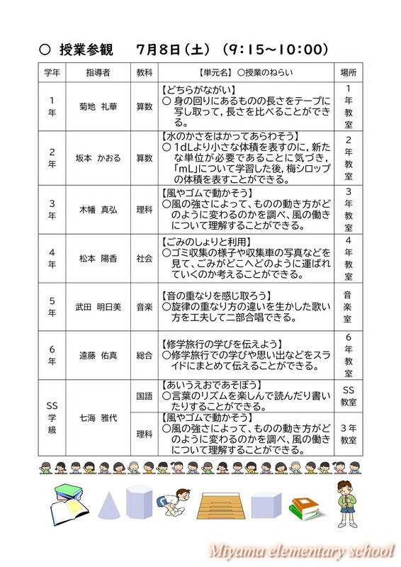 先日のような猛暑ではありませんでしたが、蒸し暑い日となりました。そのような中、授業参観にお越しいただきありがとうございました。子どもたちの様子はいかがだったでしょうか。学習の様子、友達のとの関わりなど、様々な視点でご覧になられたと思います。本日は、学級懇談の時間がとれませんでしたので、気になることがございましたら、後日担任までお知らせください。