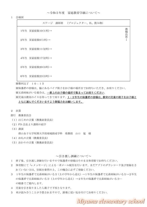 明日は、今年度2回目の授業参観、家庭教育学級があります。お忙しいところとは思いますが、入学・進級して3か月、統合して3か月が経過した、今の子どもたちの様子をどうぞご覧ください。明日は、初めて雨の中で保護者の皆様をお迎えすることになりそうです。アスファルト駐車場には限りがありますので、校庭を使わざるを得ません。校庭から校舎までの間は足下が大変悪くなりますので、ご容赦ください。