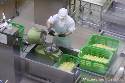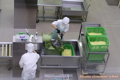 2年生は、給食センターに見学に行ってきました。野菜をあっという間に切るところや、大きな鍋で煮るところを見てきました。「今日の野菜は一段とおいしい!」とは、2年生のコメントです。