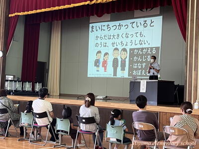 2023年7月8日 15時31分メディア(ゲームやスマホなど)との付き合い方をテーマに、教育講演会を開催しました。講師の先生からは「このテーマではどうしても子どもだけ、保護者だけという講演会が多いのですが、今回は一緒に考える、一緒に学ぶという機会で、とても貴重です。」とお話をいただきました。これを機に、ときどきルールについてご家庭で話してみるといいですね。PTA教養委員会の皆様には、このような機会を設けていただき、ありがとうございました。