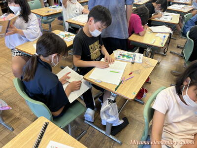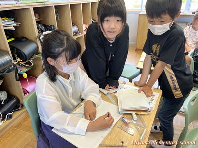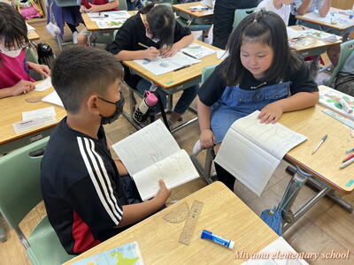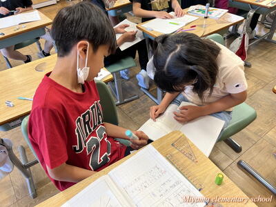 4年生は算数で分度器を使って学習しています。ご存知のとおり、分度器の目盛りは180°までしかありません。今日は180°よりも大きい角度をどうやって測るかについて考えました。「分度器は180°までしか測れないから・・・」「角を分ける?」「360°から引く?」友達と考えを伝え合います。角度の見方、意外と難しいのです。