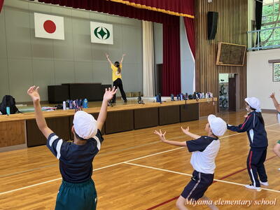今日は5・6年生のダンス教室でした。昨日に引き続き、AyaKa先生に教えていただきました。もちろん、5・6年生は難しいバージョンのダンスです。ダンスに抵抗のある子もいるかな・・・と思いましたが、やるときにはやる高学年!「難しい」「覚えられない」と言いながら、曲に乗りながら、一生懸命に全身で表現していました。5・6年生の大きな体でのダンスはダイナミック! 見応えがあります。