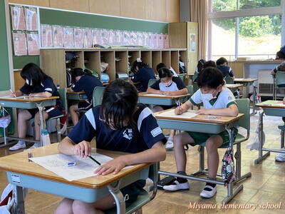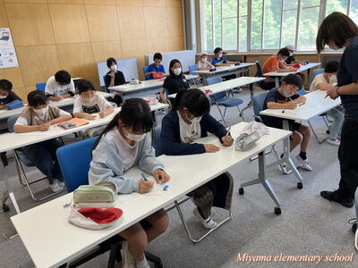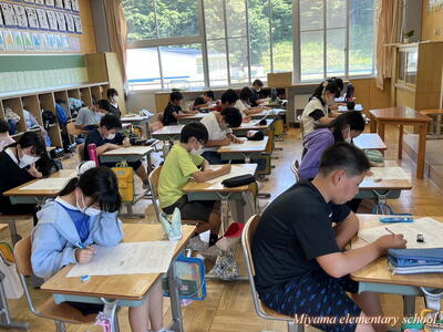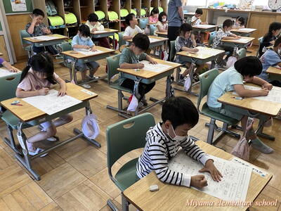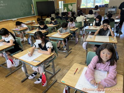 今日は、第1回算数コンテストでした。すべての学年で、これまで学習した内容の確かめ問題に取り組みました。もちろん、1年生も頑張りました。今回のコンテストの合格点は80点です。しかし、何点であっても自分ができなかった問題をできるようにすることが大事なこと。テストが終わってからの振り返りと復習を大切にしたいと思います。