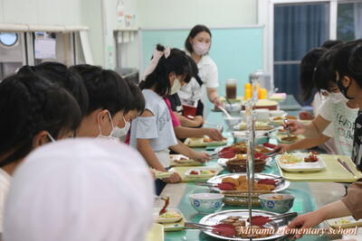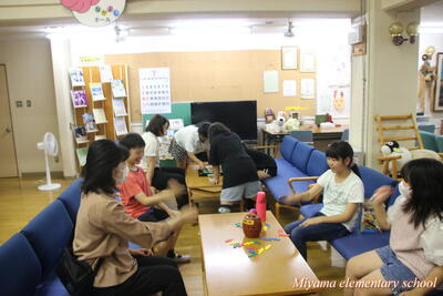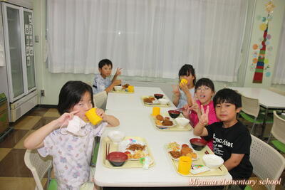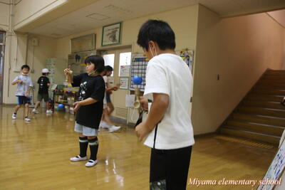 2023年7月5日 18時50分夕食前に少しくつろぐ時間がありました。自然の家を探険したり、けん玉をして遊んだり。午後5時20分から夕食です。自分の食べられる分だけ、でも栄養を考えてバランスよく取ります。午後6時15分からは室内サーキットで汗を流します。