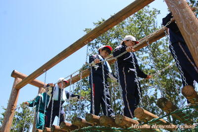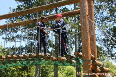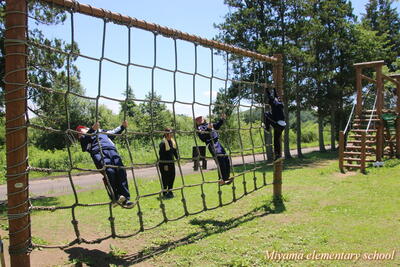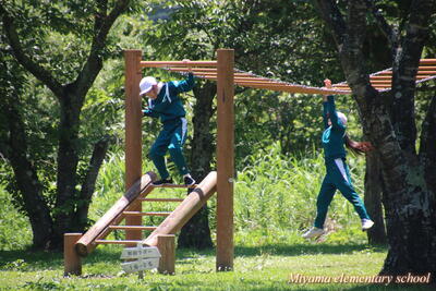 2023年7月6日 13時48分今日の午前中は、地図をたよりに自然の家の周りを探険しました。豊かな自然に触れながら、指定されたポイントを見付けていきます。ゴールしたあとは、フィールドアスレチックで、ダイナミックに遊びました。