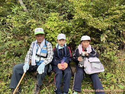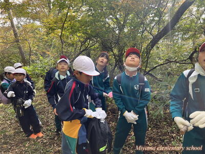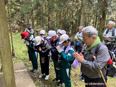 4年生は、移ヶ岳を登ってきました。春の登山に続いて2回目です。春の頃と比べて、山の様子、生き物の様子がどう変わったのかを五感をとおして感じてきました。まずは瑞峰平の駐車場から元気に出発。途中神社で、登山の無事を祈りました。