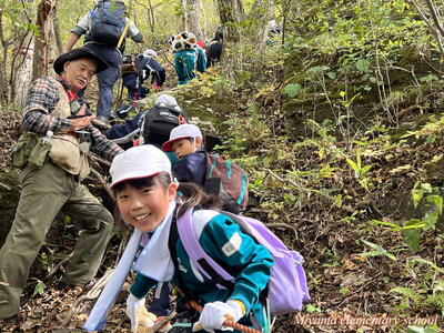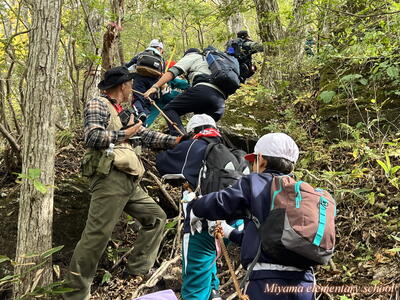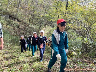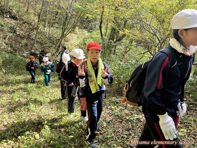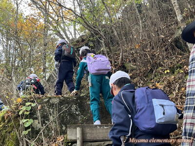 2023年10月20日 15時03分4年生は、移ヶ岳を登ってきました。春の登山に続いて2回目です。春の頃と比べて、山の様子、生き物の様子がどう変わったのかを五感をとおして感じてきました。まずは瑞峰平の駐車場から元気に出発。途中神社で、登山の無事を祈りました。