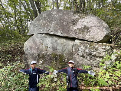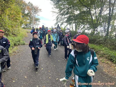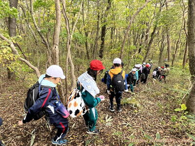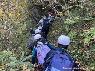 帰りも安全に気をつけて、周りの景色や植物を観察しながら下りました。登山道は、熊笹等が生い茂っていたそうですが、4年生の登山に合わせて、美山地区観光協会の皆様、美山地区の区長様、組長様、市役所の皆様が、15日に草刈り等の整備作業をしてくださりました。15日はどしゃぶりの雨でした。本当にありがとうございました。おかげで、安全に登山をすることができました。