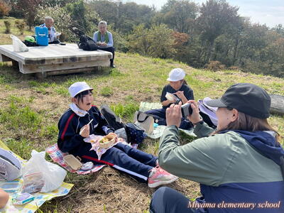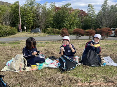 子どもたちが登山で最も楽しみにしていたのは、お弁当です。駐車場のある瑞峰平まで戻ってから、おうちの人が作ってくれたお弁当をおいしく食べて、登山の疲れを癒やしました。お弁当やおやつの準備、ありがとうございました。
