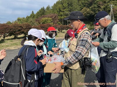 今回も、学校ボランティアの皆様が登山のガイドと安全管理をしてくださいました。そして、それぞれの皆様からおやつまでいただきました。子どもたちのために、本当にありがとうございました。