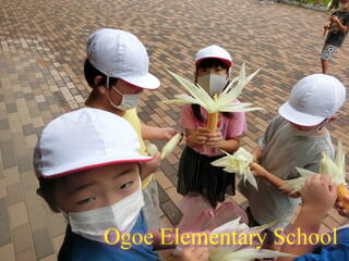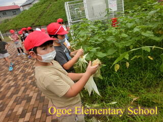 猛暑や大雨といった異常気象が続き、育ちはそれほどではなかったようですが、自分たちが育てた喜びはとても大きく、楽しそうに皮をむいて、各自お家へ持ってかえりました。