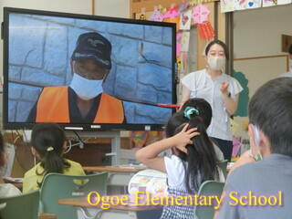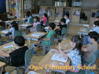 大越中学校区幼小中一貫教育の計画で、こども園の年長さんと1年生が交流活動をしました