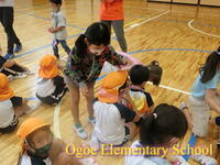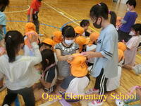 交流会では、それぞれの自己紹介と交流遊び(ジャンケン陣地取り)そして1年生の手作りメダルをプレゼントしました楽しい1時間を過ごすことができました
